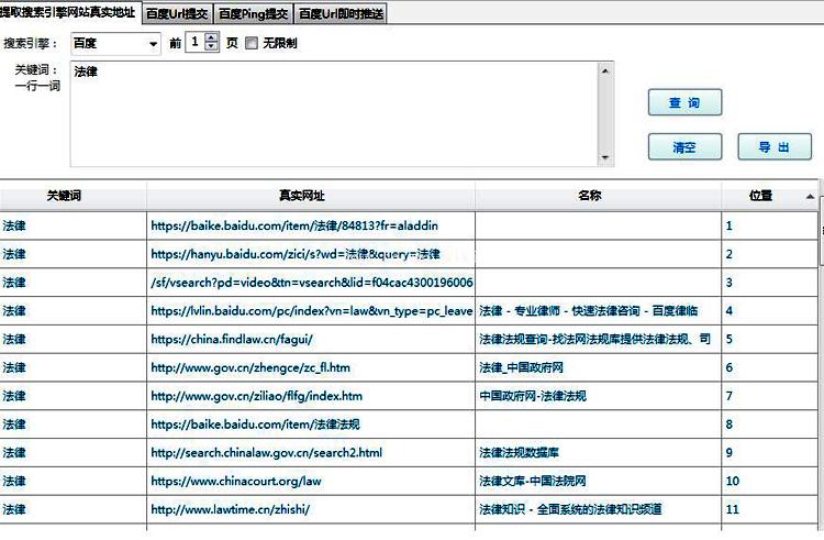 法律行业一些核心垂直的相关关键词,进行检索,你就可以快速的得到TOP50的搜索结果,其中,我们可以合理的筛选一些目标网站,如下图: